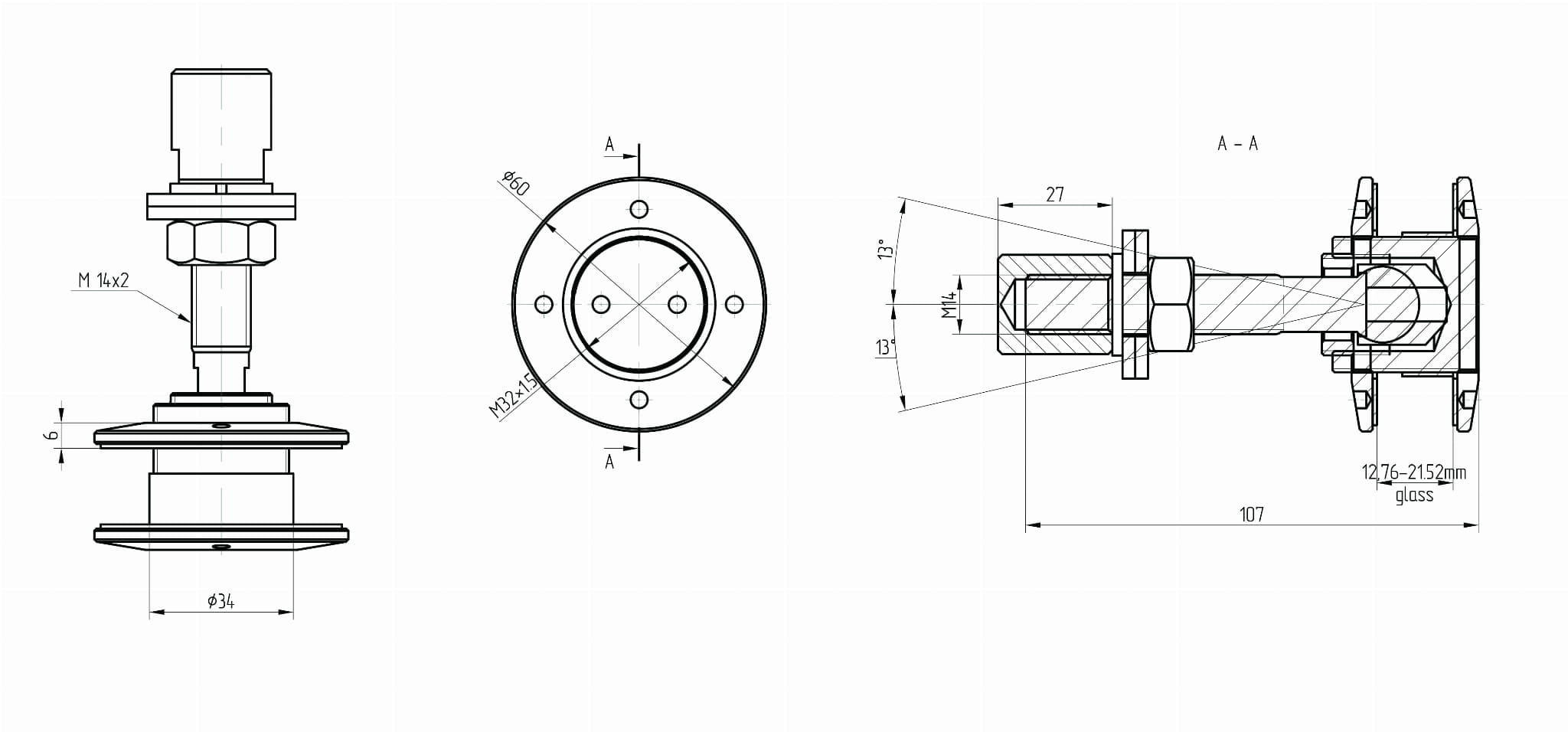 - El orificio mínimo de montaje en el vidrio - Ø 35 mm