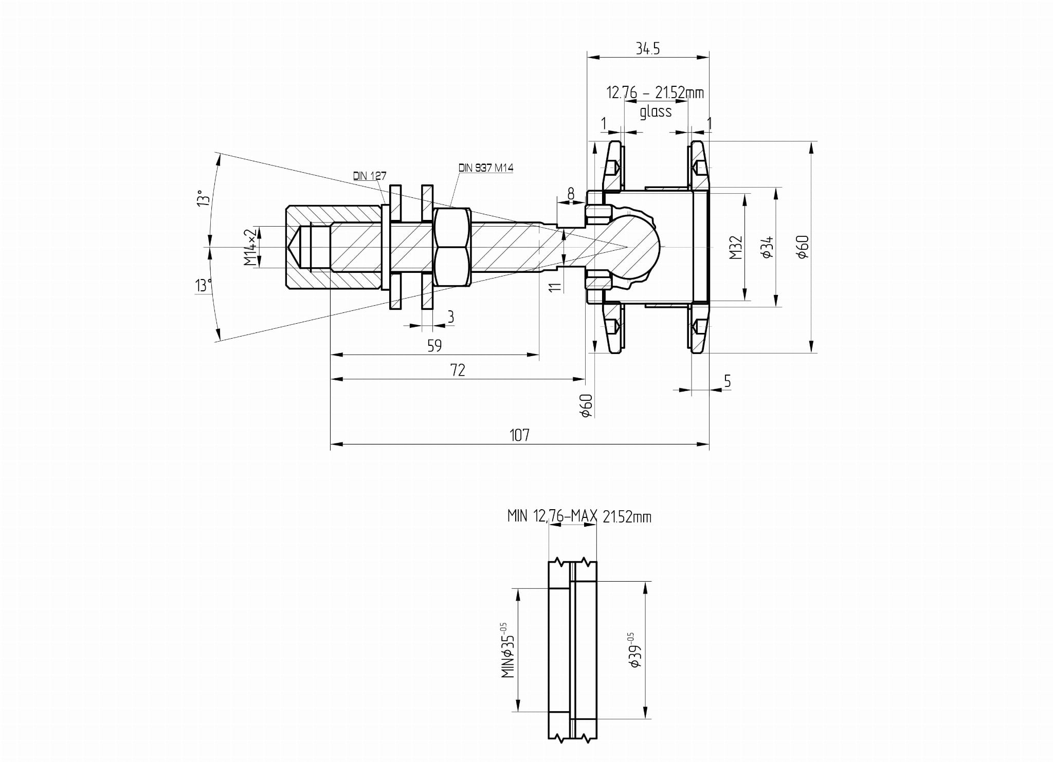 - Para vidrio de 13 - 21,52 mm