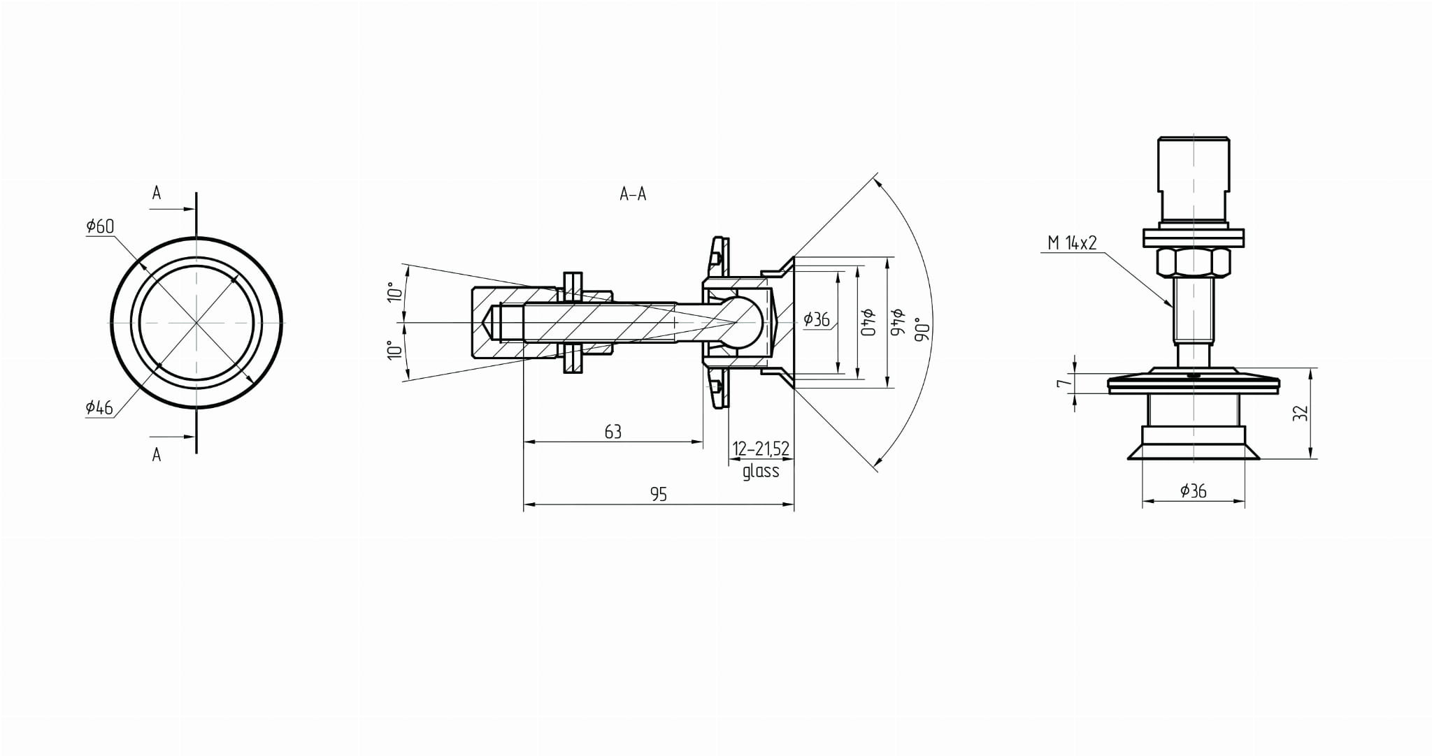 - El orificio mínimo de montaje en el vidrio - Ø 37 mm