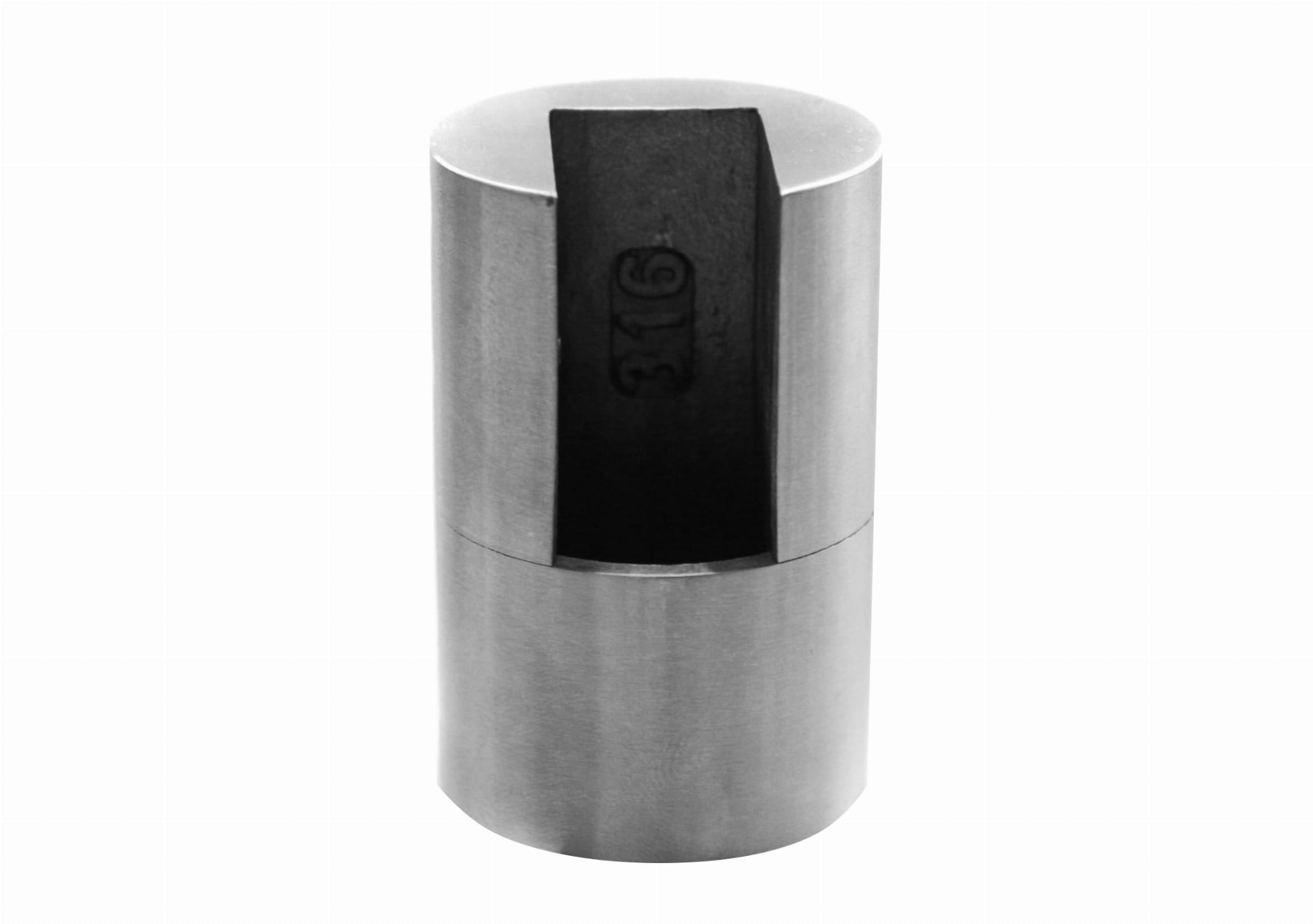 Soporte cilíndrico IZQUIERDA, superficie plana, AISI 316, SATINADA