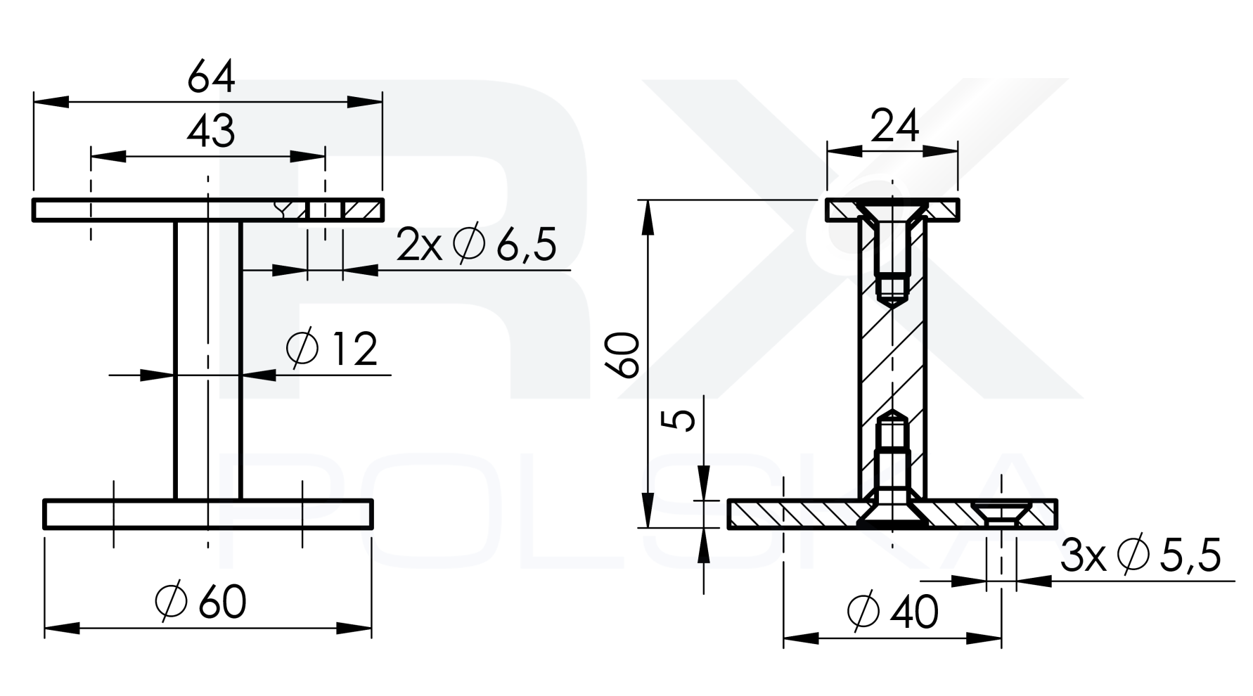 - Disco con tres orificios de montaje para tornillos / tornillos avellanados de Г 5mm