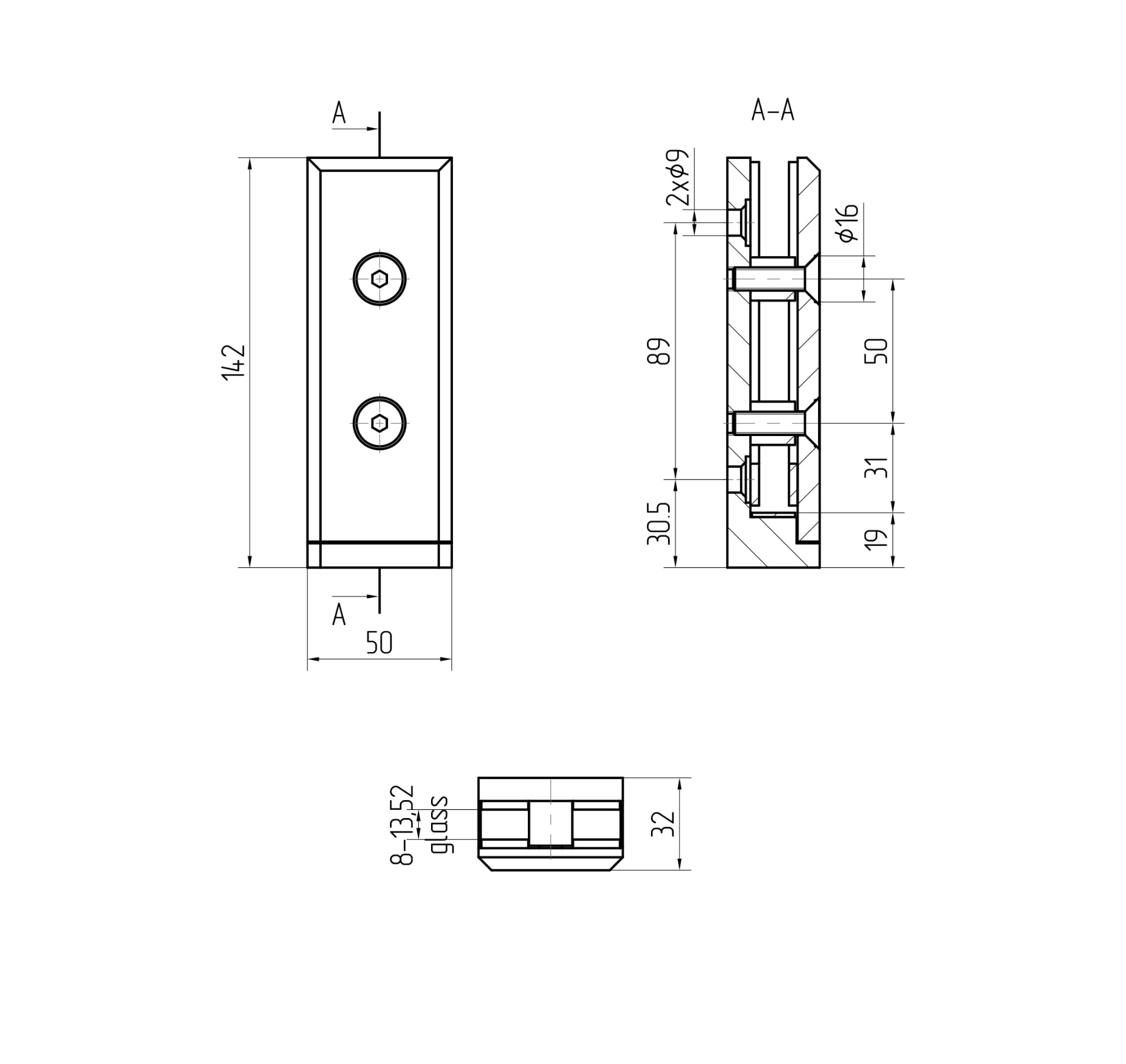 - Para vidrio con un espesor máximo de 8 - 13,52 mm
