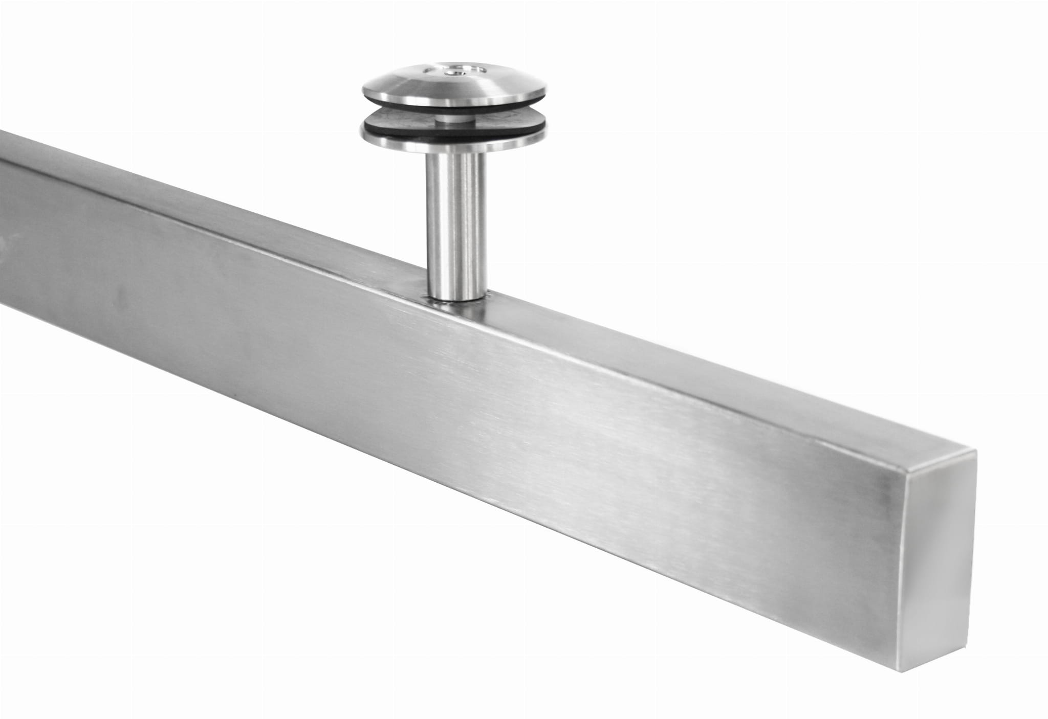 - Vidrio montado sobre "Soporte puntual Ø60 mm DIN 7991 M10 mm, AISI 304, SATIN" + casquillo distanciador fi 20x60 mm