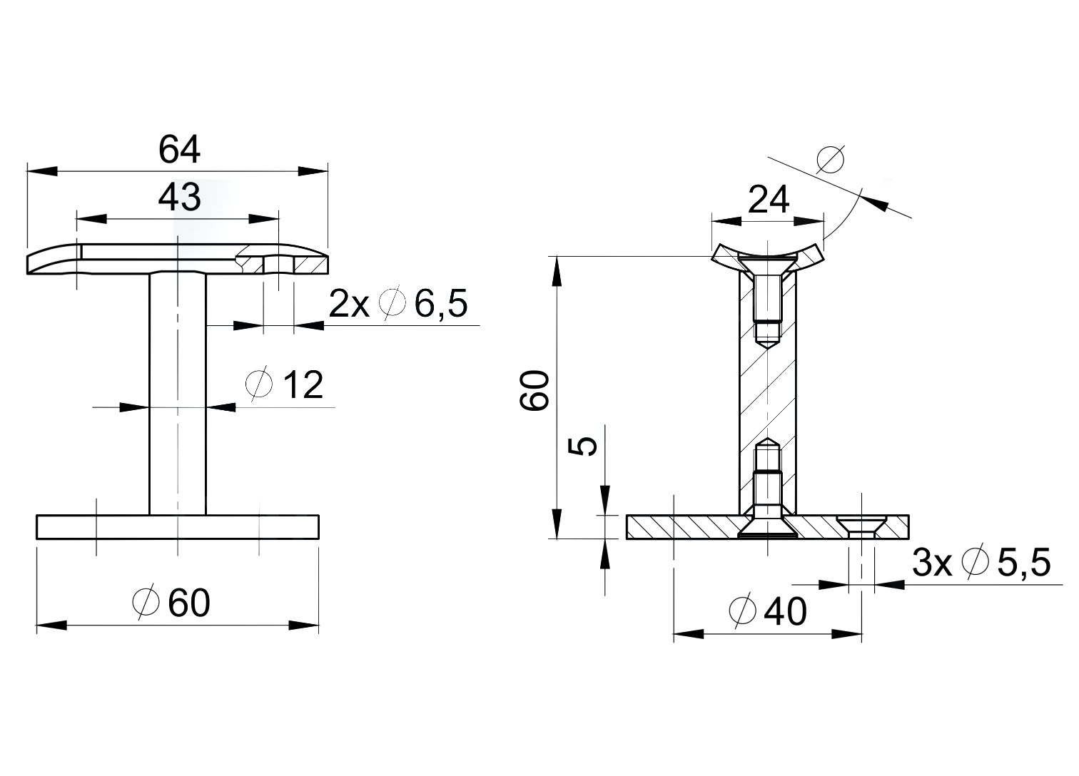 - Altura total del soporte: 60 mm