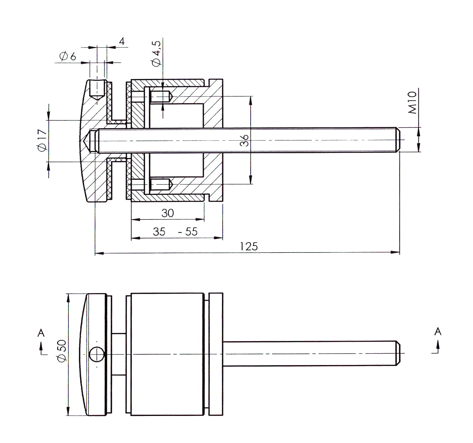- Tubo separador L = 35 mm con rosca M10, ajustable: