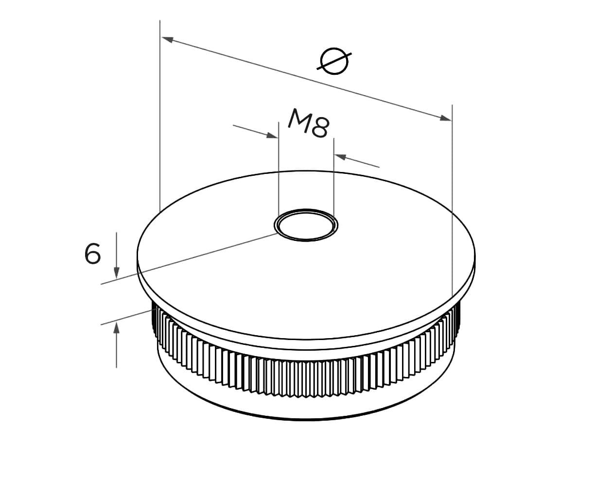 Tapón terminal 48,3x2 mm, rosca M8, AISI 304, SATINADO