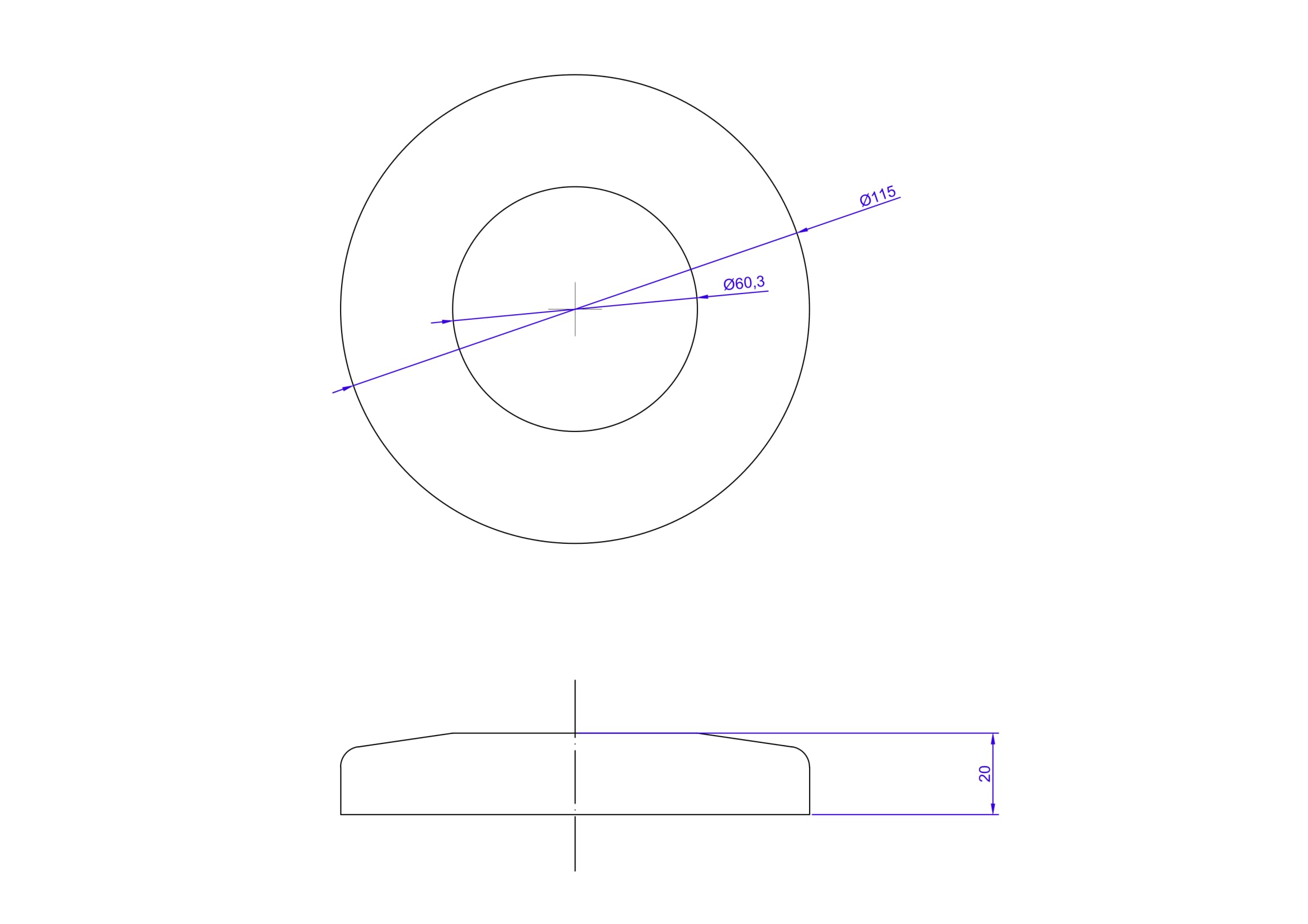 Tapa para tubo 60,3/115 mm, AISI 304, Pulido