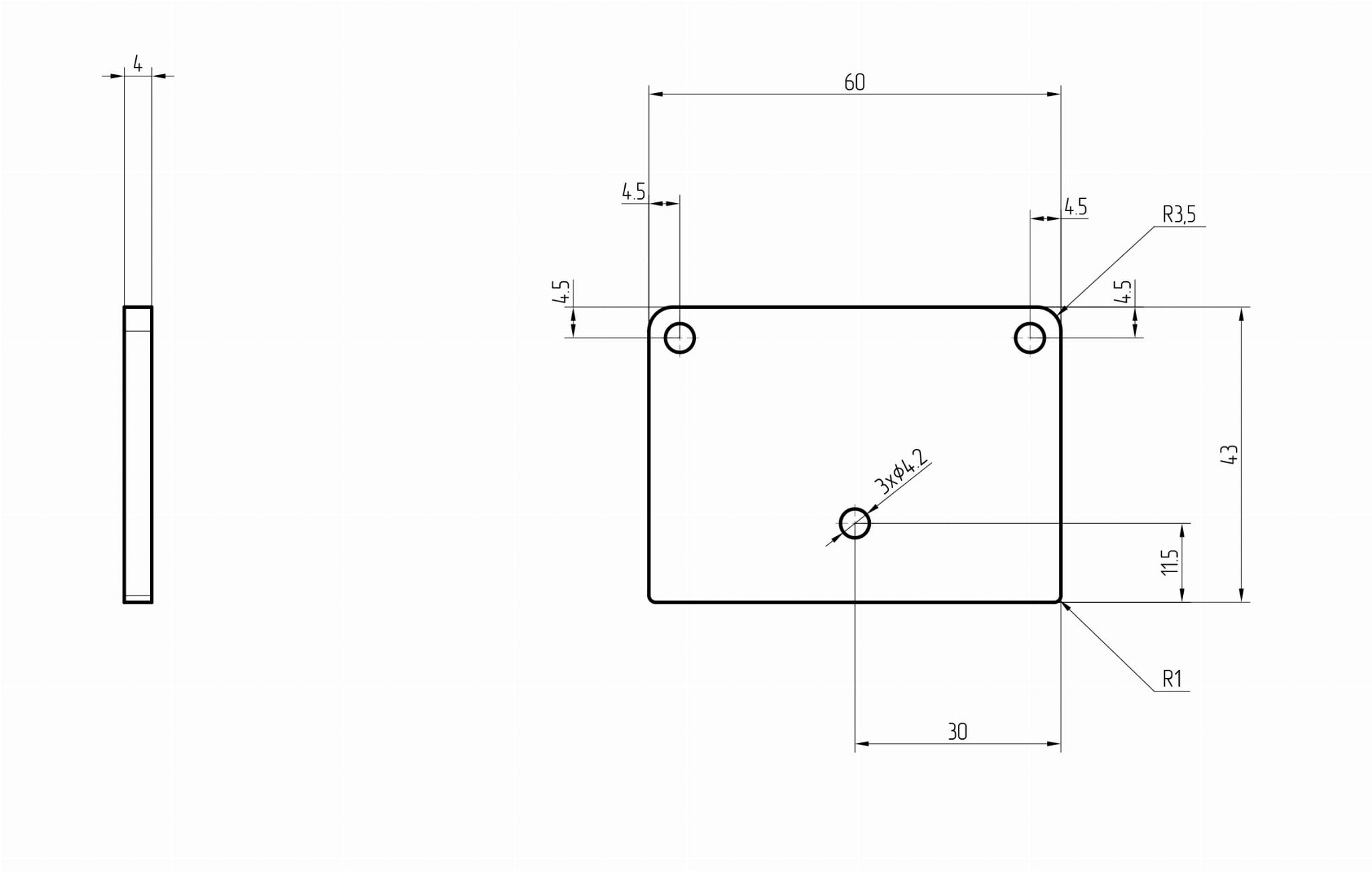 Tapón para pasamanos 40x60 mm de acero AISI 304, superficie en bruto (destinada a pintura en polvo).