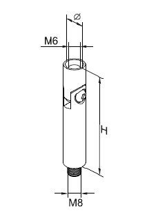 - Rosca externa M8: en la parte inferior del elemento